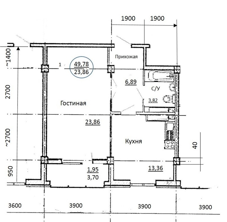 Перенести дверь в комнату максимально к двери кухни. Таким образом немного продлится коридор, не будет глухого угла (безполезного) между кухней и комнатой, а самое главное увеличится ниша на те самые см, что позволит поставить кровать не вдоль стены, а так, что можно будет к кровати подходить с двух сторон (можно тумбочки с каждой стороны поставить. Рядом сделать шкаф-купе. Спальное место будет как бы отделено от общей комнаты. Получается: тумбочка (50см), кровать (150см), тумбочка (50см) . Остается 3900-2500=1400см. Можно шкаф-купе сделать дверьми в сторону кровати (1400см в глубинну и почти 2000см в ширину шкафа) или двери шкафа в сторону комнаты, тогда 1400см в ширину и почти 2000см в глубину (практически гардеробная.
