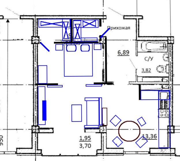 Что посоветуете? Какие отзывы по размещению кровати в нише? План квартиры в Подкат