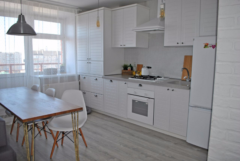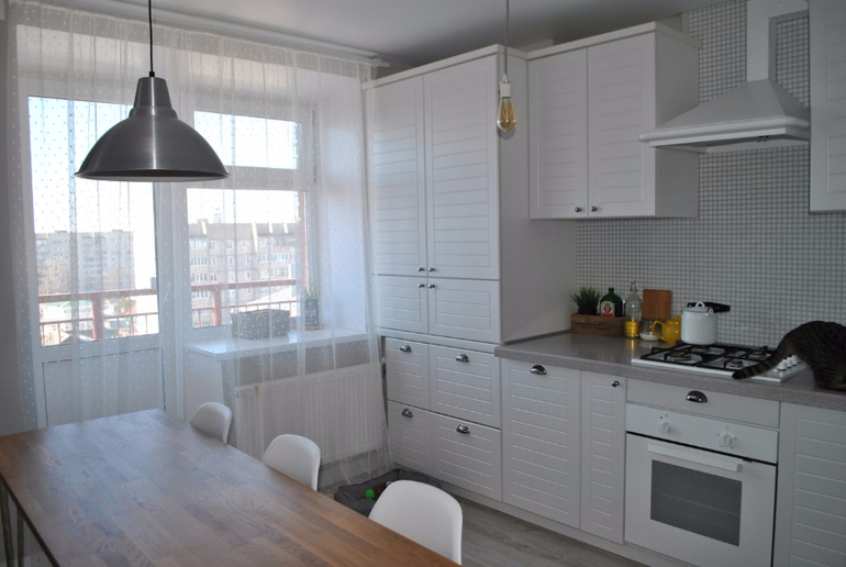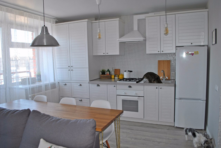 Итак. Имелась квартира 60 квадратов в новостройке, сдача - стены в штукатурке, залитый пол, котёл, стеклопакеты, одна лоджия застеклена (вход в неё из детской, её пока не показываю. там еще много недоделок), из кухни - выход на незастекленный балкон.