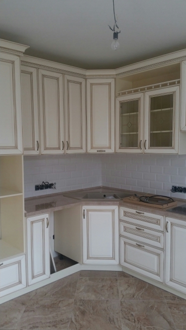 Фасады натуральное дерево. Цена гораздо ниже чем у других. Всё в срок. Рабочие все русские. Скорее бы уже что нибудь приготовить на ней :)))