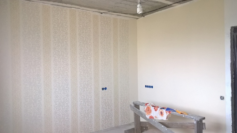 Интерьерное решение спальниДевочки, вот такая у нас спальня будет). Первый опыт с обоями был. Теперь выбираю сюда люстру. Еще сегодня выложу детскую, кухню и прихожую).