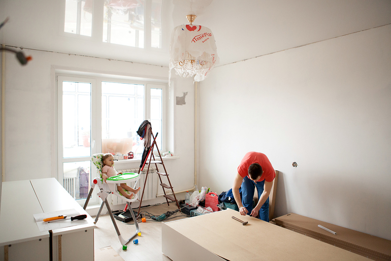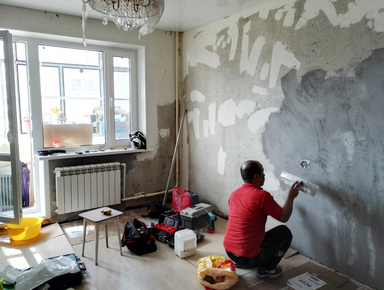Бригада выравнивала стены, монтировала шкафы, клеила обои и плинтуса, ну и красили.