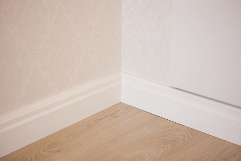 я уже писала где-то в комментах.... там добор ( выпиливали из мдф, из которой мебель делают) , который прикрепили к шкафу, а шкаф к стене.