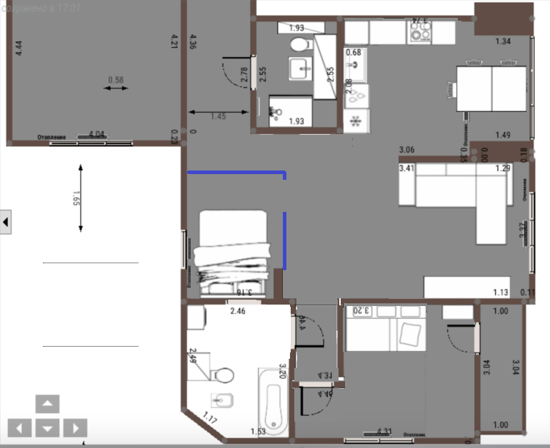 Жанна, вы в прошлый раз единственная кто предложил вариант, я сначала так и рисовала двери большого с/у и комнаты. но просто сейчас живем на съемной квартире и наша спальня такая же маленькая как вы предложили-ух летом дышать нечем, а зимой с отоплением жарко, хочется уже пространства больше