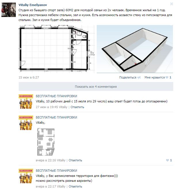 Есть также супер быстрый ответ за 1 день сразу 3 варианта планировки