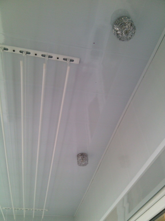Потолочная,на одной стороне закрепленна и вытягивается к другой,незнаю как обозвать этот механизм. Это для постельного и пледов. А для мелочи,напольная складная. Брали сразу хорошую,порядка 3000 стоила 2 года назад. У нас 2 огромные лоджии,поэтому не мешают.