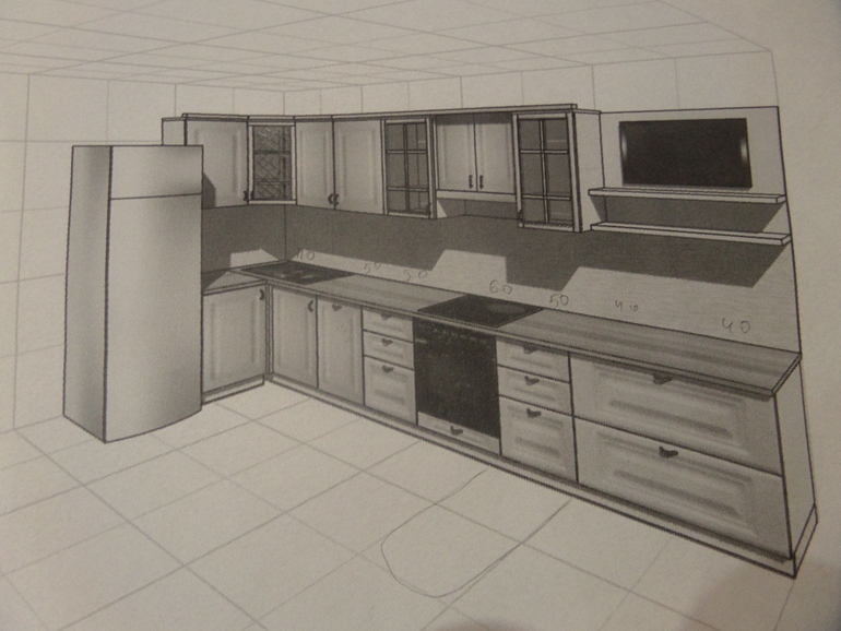 нарисовали немного не так как будет, на месте уже сориентируемся. и ТВ будет меньше на кронштейне, повернем,чтобы в центр кухни смотрел.