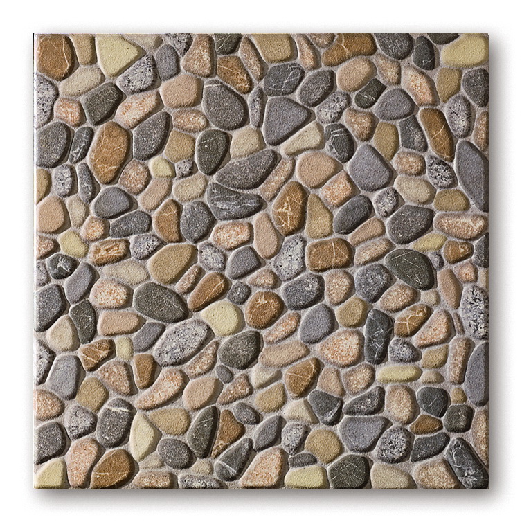 Это просто плитка "под гальку". Есть мозаика на сетке в форме гальки - укладываете и швы затираете. Есть именно плитка напольная с таким рельефным рисунком - ее проще укладывать. Или еще вариант - наливной пол с рисунком