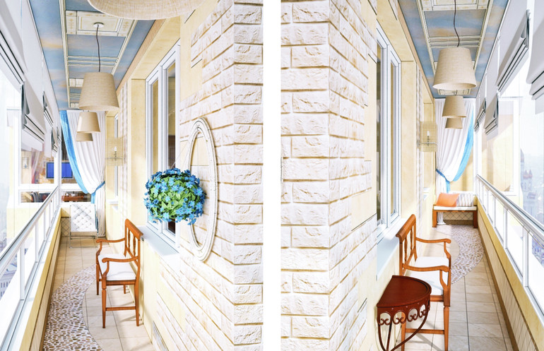 Это пример балкона: тут есть кирпич, и если добавить фреску - она только подчеркнет стилевую направленность интерьера.