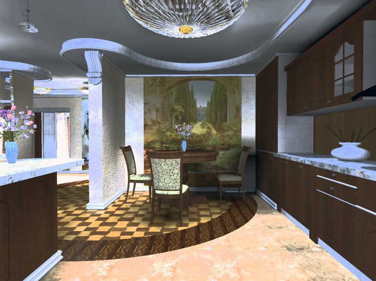 1. не будет ли при выборе цветной фрески вся кухня яркая, да еще напротив фрески телевизор? не будет ли куча ярких акцентов, которая сделает кухню шумной и каждая деталь будет перетягивать внимание на себя?