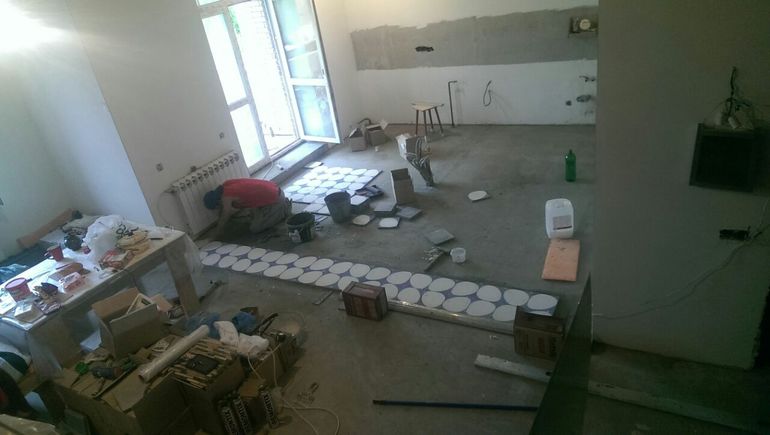 сделаете пол и мебель не ставьте, нельзя такую красоту загораживать )))