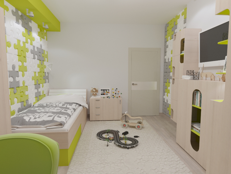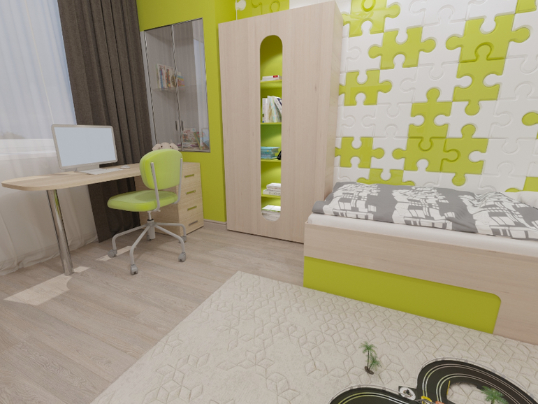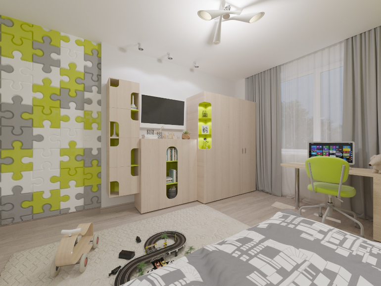 от зигзагов в комнате девочки рябит в глазах. Мне было бы не комфортно. А вот комната мальчика понравилась, с пазлами - оригинально и цветовая гамма приятная глазу