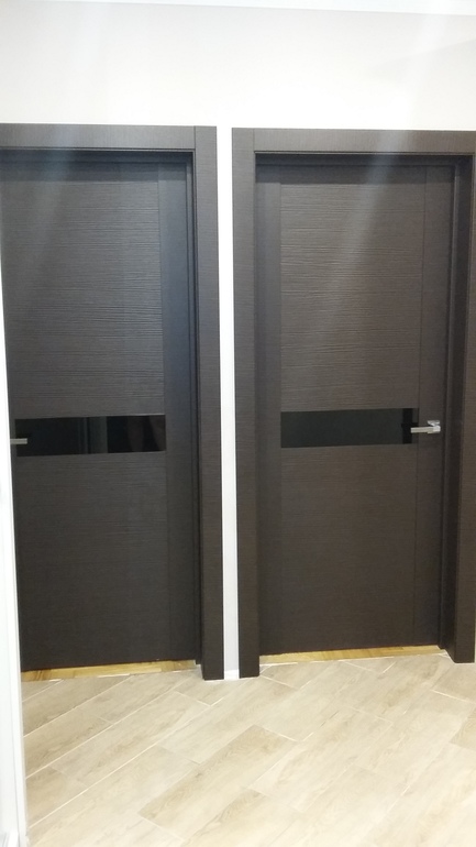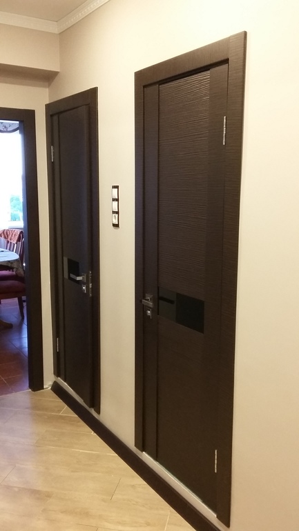 ЭТо мы теперь правильно поставили двери. А так как до этого неправильно стояли старые двери, то и кладка паркета шла под них ((((. Теперь ищем порожки в цвет венге. ))))