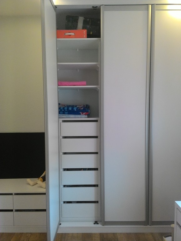 Здравствуйте. Расскажите поподробнее. Дверцы на магнитах? Какая вставка в профиле, лдсп в дверках или ....что то другое. ? Красиво все и функционально. У нас шкаф в коридоре Командор пока без дверей! Хочу белые дверки, а механизм нажимной. Качество отменное!