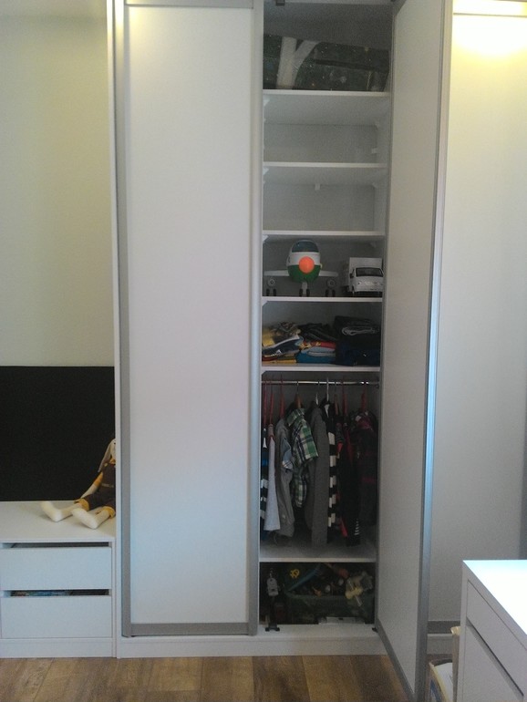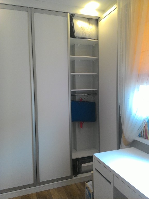 Какая красота у вас. Скажите а вот шкаф в ширину каждое отделение сколько см? мне как раз бы еще один такой пенал для третьего и прям красотища будет. Расчитать бы для детской сколько выедет в ширину мне четыре шкафа. Спасибо большое за фото, так помогли)))