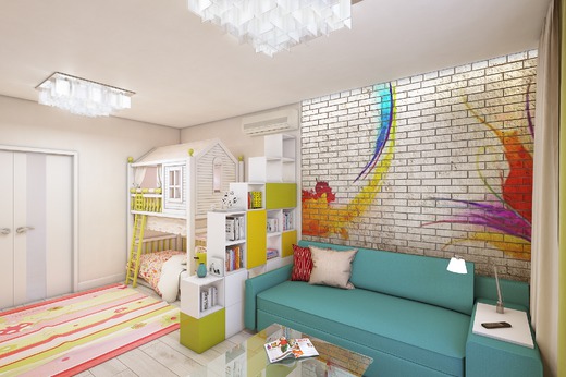 так бы не стала делать, детское спальное место должно быть отдельно от общего, где посиделки с телевизором и т.п.