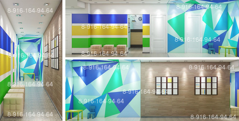 Передо мной стояла задача сделать яркое, красивое помещение. Возраст посетителей от 2 до 10 лет.