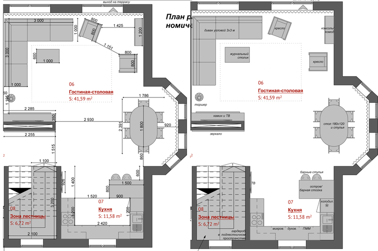 Розетки у нас будут просчитывать после того, как определюсь с расстановкой мебели. Да, точно ж посудомойка будет, так что руками только мелочь остается мыть. Тогда ПММ можно с мойкой на первом варианте поменять и полезной рабочей поверхности будет больше.