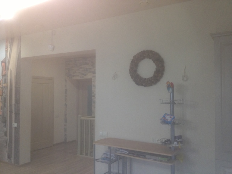 Помогите, пожалуйста, определиться. Это наш зал, совмещенный с кухней. Планируем оформить стену с веночком. Столик пристенный будем менять, примерно на такой, как на 4-Ом фото. Он будет Тоже с плетеными корзиночками.