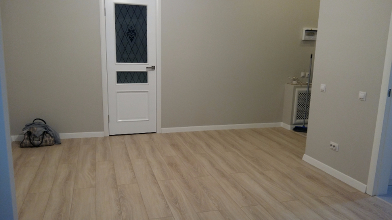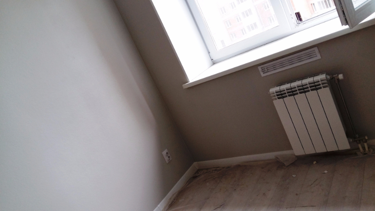 При вечернем освещении, уже без пленки на ламинате. Сдали нам рабочие квартирку уже.