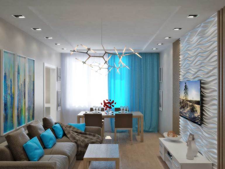 Дизайн квартиры был выполнен в стиле современного минимализма. Цветовая гамма спокойная, бежевая, разбавленная вкраплением ярких цветовых акцентов. Основной задачей в этом проекте было сделать дизайн максимально простым, не загроможденным, но при этом уютным и не холодным. Материалом для стен послужила гладкая покраска, на полу применялся керамоганит и массивная доска, потолок комбинированный, натяжной глянцевый и гипсокартон.