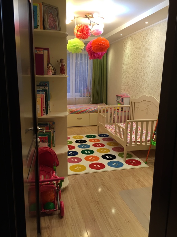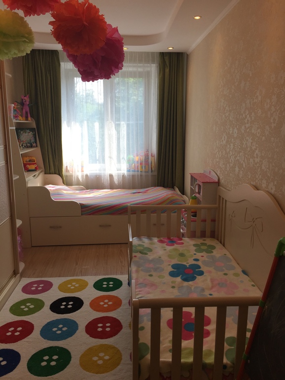 Интерьерное решение детской комнатыВот и пришло время отселять среднюю дочку от нас к старшей сестренке. 🤔Комната очень неудобная: длинная и узкая, как вагон, зато очень солнечная, светлая, теплая! Старшая дочка идет в этом году в школу, средней 2 года 3 месяца. Мебель в комнате сделана на заказ, но качество оставляет желать лучшего(👿 Изначально планировалось дозаказать кроватку из таких же материалов, а в итоге ришили искать готовую подходящую. Так что вторая кровать не из комплекта) места для игр осталось немного, но зато комната практически сохранила первоначальный вид! Так как другой детской комнаты все равно нет, радуемся этой) осталось только другие покрывпла на кровати подобрать😉🤔