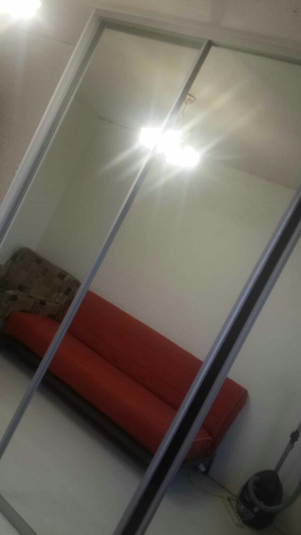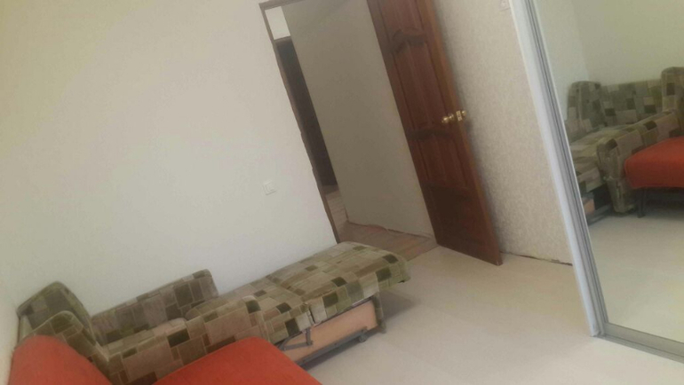 Красный диван - это гостевой (для бабушки с дедушкой). Стоит в заправленном состоянии.