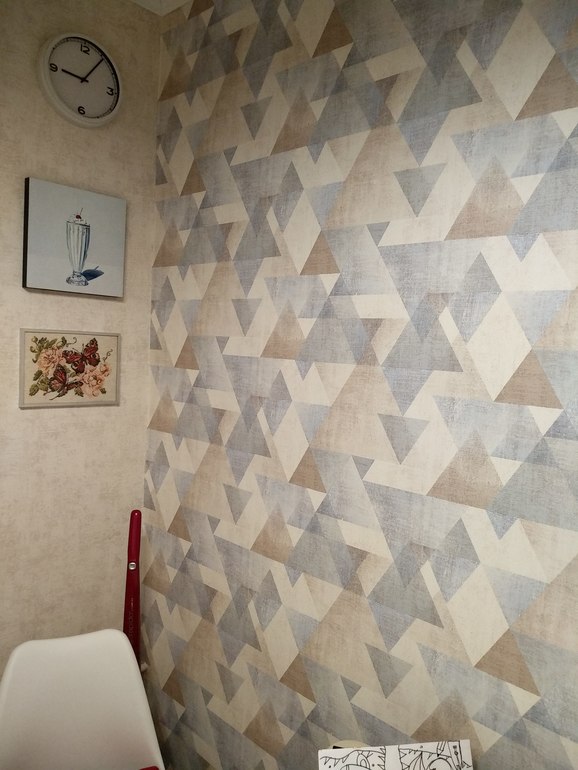 Добрый день. Я сейчас в процессе ремонта, тоже нравится геометрия, понравились ваши обои)) я подобные присмотрела еще у производителя Ugepa) и еще у Granbeco что-то похожее.... Вот не знаю на чем остановится, а по кусочку с каталога мне сложно представить как на стене будет...Если не сложно, можете показать как ваши обои смотрятся на стене в кухне?