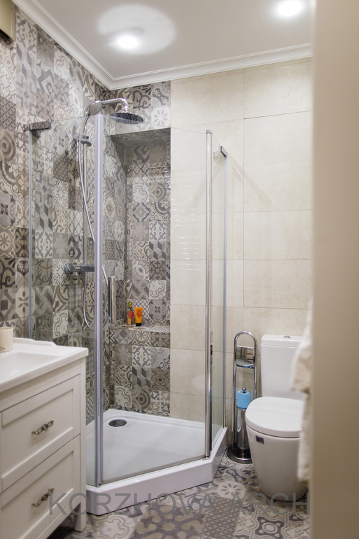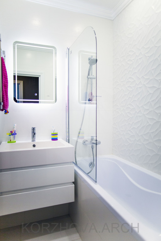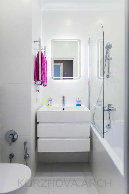 Из коридора также вход в общую ванную. По сравнению с проектом она получилась чуть более строгой)