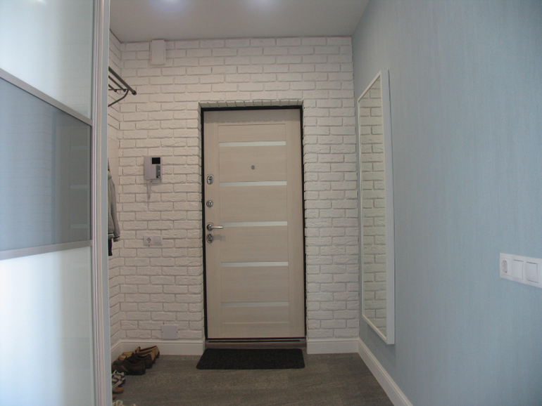 Коридор - Длинный коридор никак не исправишь, я его зрительно поделила зону прихожей, где будет вся обувь и верхняя одежда. Видела у многих такое. Ну и длинный шкаф-купе, куда можно затолкать всю верхнюю одежду и коробки из под обуви, а так же пылесос и прочие мелочи. Двери Торекс Ультиматум. Вешалка и зеркало Икея.