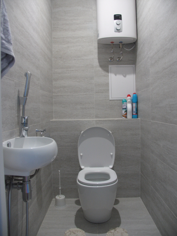 Туалет и ванная, керамогранит Эстима, ванна чугун Якоб делафон, сантехника Grohe