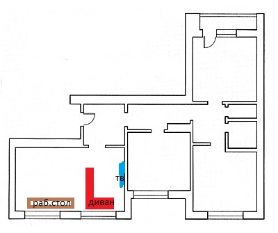 К сожалению, ничего в этих сериях не понимаю ) Тогда вот так изображу ) Справа от стола, это шкаф/шкаф-витрина для книг, документов.