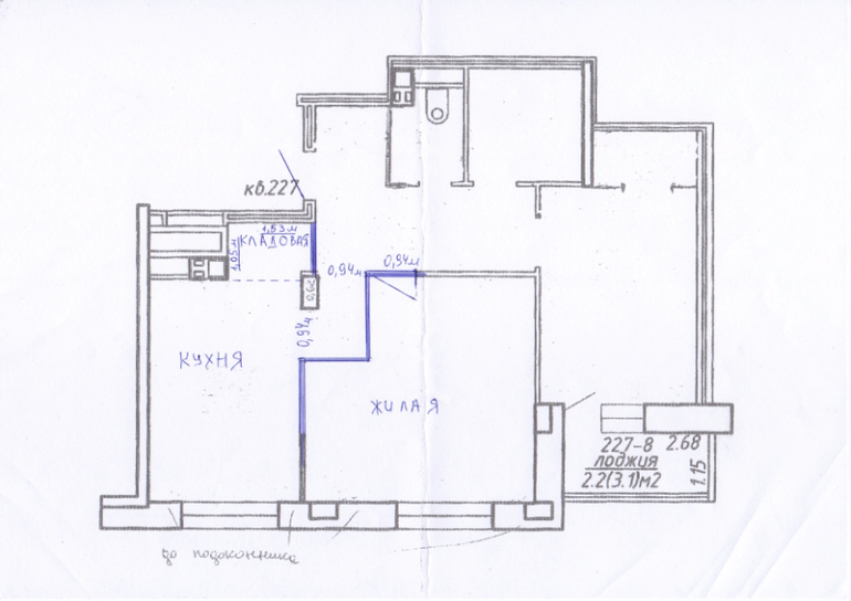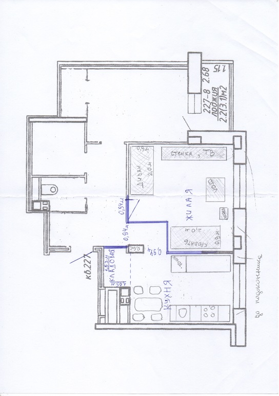 Перепланировки стен. Согласование перепланировки квартир и нежилых помещений.Доброго дня всем! Давно читаю блог и, так сказать, напитываюсь информацией. Предстоит делать отделку в новостройке. Но вот застряла прям с первых шагов. Помогите, пожалуйста, советом. Есть двушка и семья из 4 человек. Каждому хотелось бы отвести уголок, да и вещей будет много. Мне кажется, что можно для этой цели задействовать кухню, выгородив там место под кладовку, или рабочий стол (на схеме видно, где). Но для этого потребуется пожертвовать немного комнатой (хотя, мне кажется, там образуются два удобных уголка, где можно поставить диван и кресло с журнальным столиком и интимно посидеть). Что уважаемое сообщество скажет? Может я что-то упускаю из вида. Со стороны будет виднее. Заранее спасибо за любые мнения.