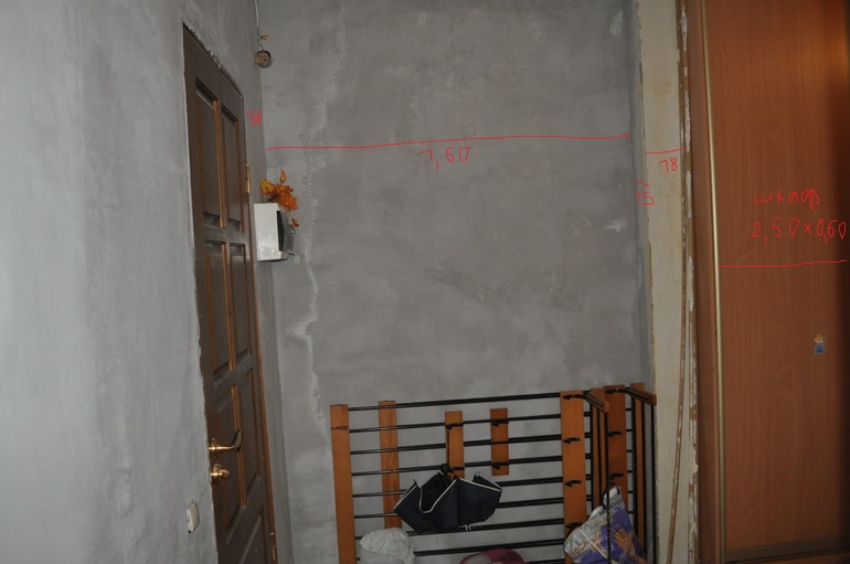 Интерьерное решение прихожих, коридорчиковЕсть такой коридор+холл. На данный момент имеется шкаф-купе: глубина 60 см, длина 2,5. Хотим сделать встроенный шкаф от входной двери, подскажите не громоздко ли будет, хотим таким образом спрятать электрощиток и выступающий короб. Получается от двери будет глубина примерно 33 см, после короба 60.