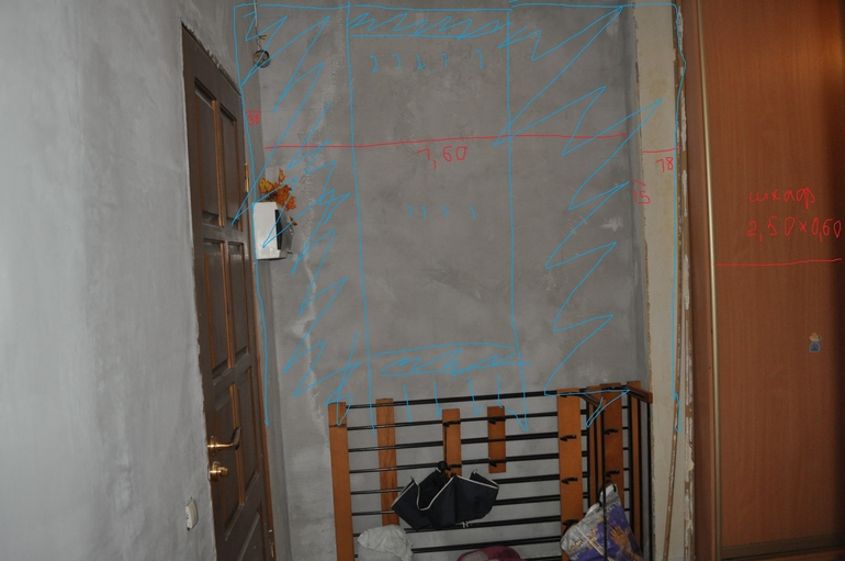 хочу сделать по бокам см. 50 шириной шкафчики для обуви до потолка, между открытая вешалка с тумбочкой-пуфиком внизу, далее плавно все переходит в основной шкаф-купе. Надеюсь понятно все объяснила и написала.
