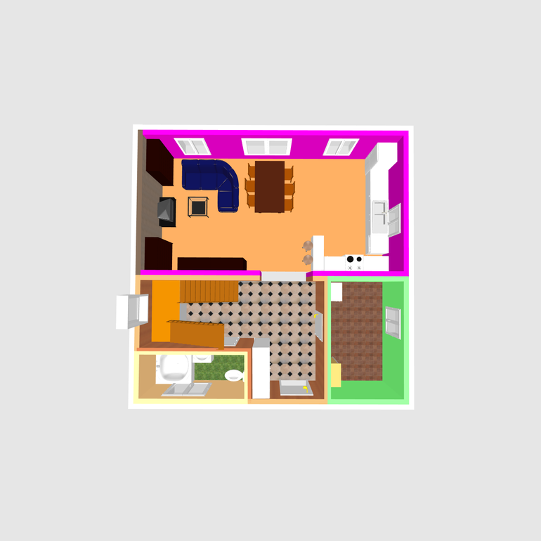 Посоветуйте пожалуйста что делать со стенами ?Какого цвета и из какого материала их делать?Пол?Хотим плитку в зоне кухни и дальше ламинат. Как красиво оформить переход?Фартуком?хотим маленькую плиточку. Подойдет она сюда? какого цвета?Столешницей? Какого цвета столешницу сделать?