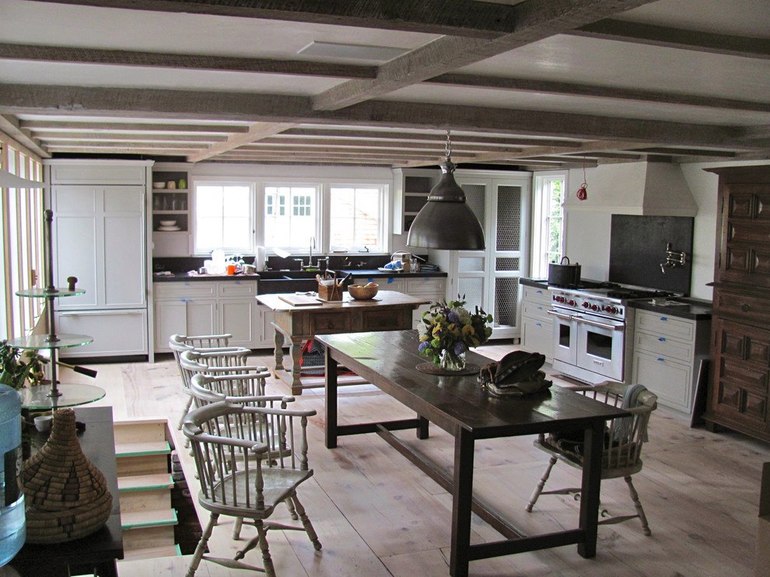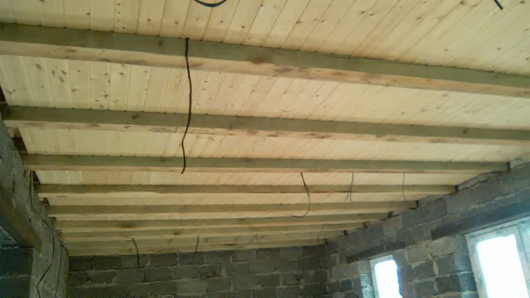, там планируется и кухня и столовая и гостиная. В качестве потолка оставили балки, далее хотим отшлифовать балки и все немного затонировать морилкой. На данный момент вот так выглядит