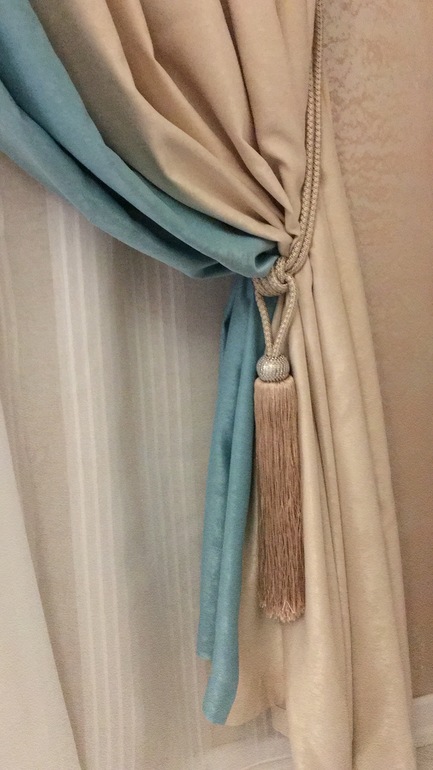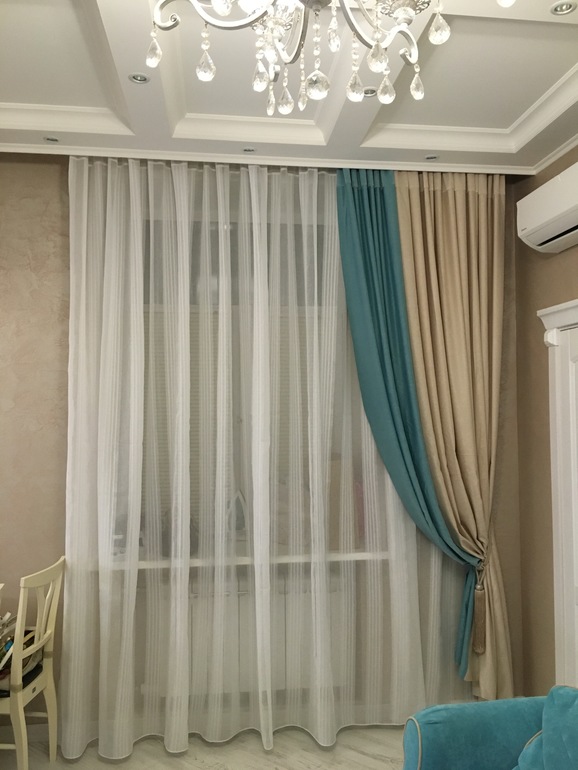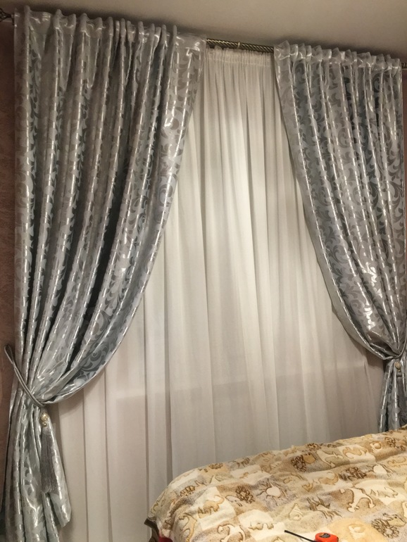 В других комнатах у нас обычные висят, тк тоже потолки натяжные. Но, кстати, тоже хорошо получилось, сделала так, чтобы палку не было видно (тесьма внутри шторы наверху и она одевается на гардину)