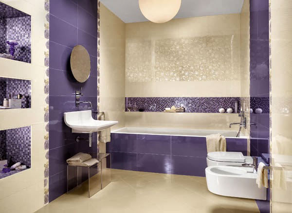 Реально такой фиолет, я выложила бежевым стены и пол, панно над ванной и декор пустила. А вы подборку естественно под себя.