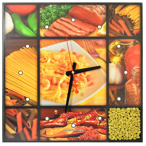 Имхо, все эти яичницы и макароны не для подобного стиля кухни. Из вашей подборки лучше смотрятся строгие ч/б часы сейко... я бы подыскала подобного типа в беж.