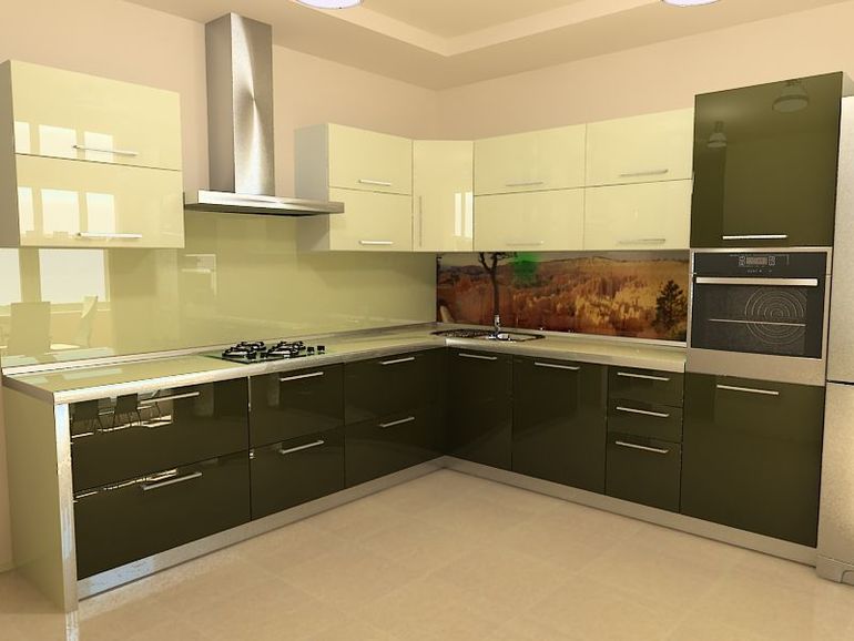 Интерьерное решение кухниКухня беж-шоколад, плита, микроволновка, духовка черного цвета. Не определилась еще с цветом для акцента, пока на примете желтый/нежно лимонный