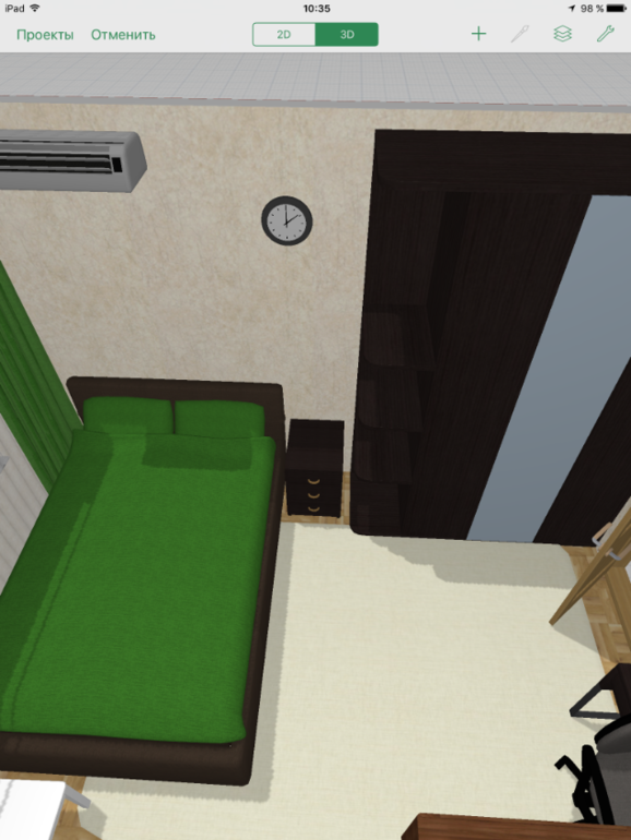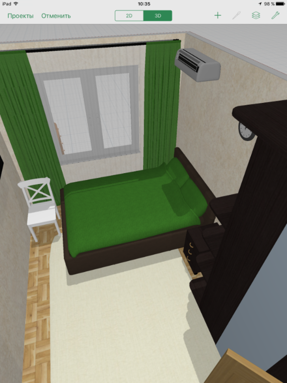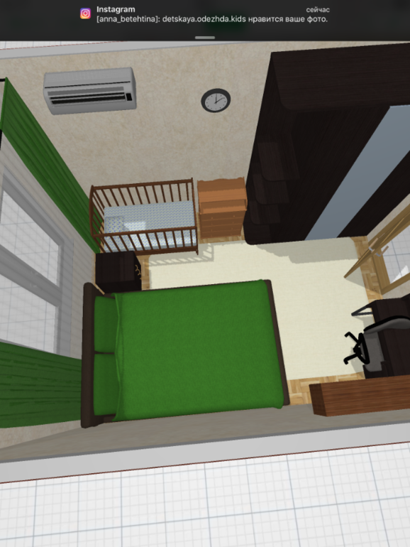 Сейчас однако пришлось кровать вернуть на место, так как была жара и нужен был по зарез ночью кондиционер.
