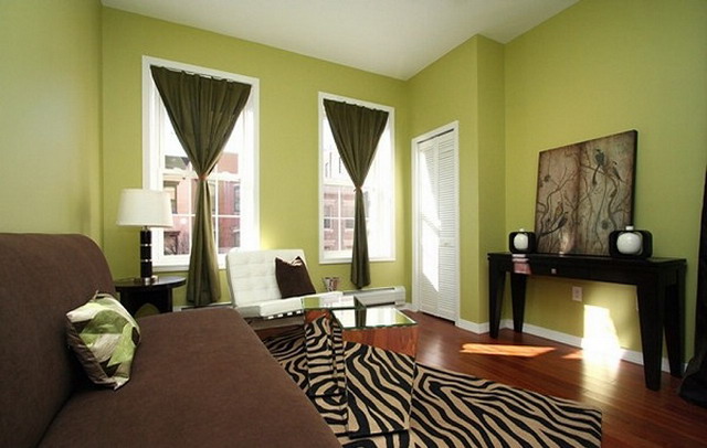 стены оклеили однотонными обоями цвета васаби, поэтому нужны яркие аксы.