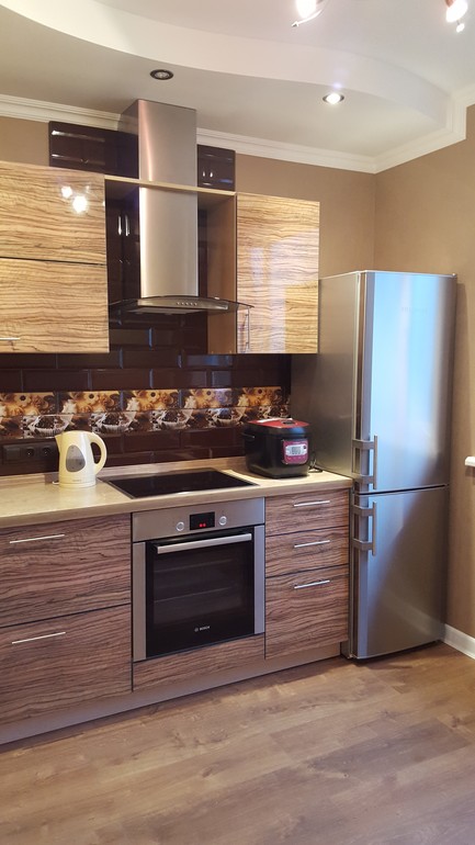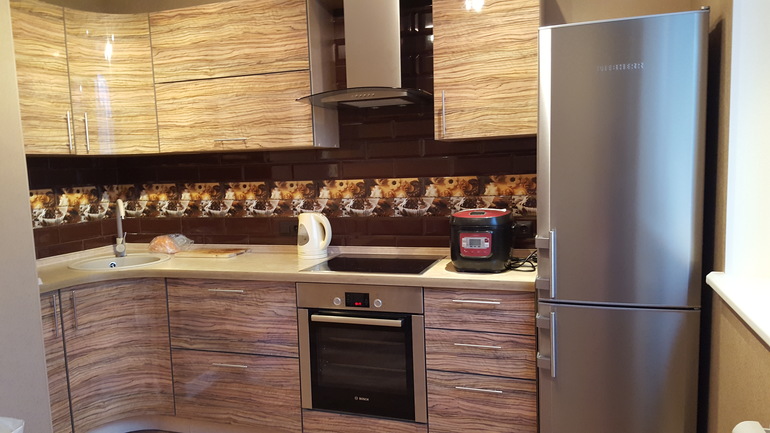 Очень здорово. Вот только над холодильником как по мне еще один ящичек напрашивается, а так все классно.