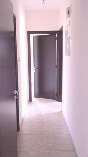 коридор длиной 3 мера, шириной 1,2 соединяет основную комнату-кухню-столовую с ванной и спальнями. Он реально узкий и темный, плюс мегаукрашение в виде электрического щитка.