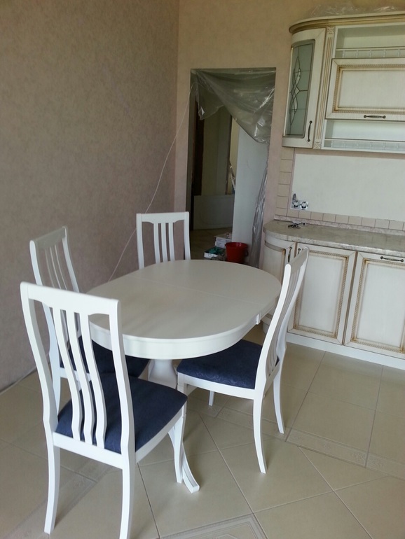 Здравствуйте, очень красиво получается, согласна что все очень сочетается у Вас,шторы думаю светлые с синей отделкой,подушечки в сочетании всех трех цветов на диван А не подскажете ,что за фирма столаи стульев?