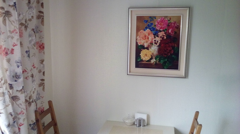 уютно и все на месте, мне очень нравится. Вы молодцы! Шторы создают уют и к картине походят или картина к ним))))