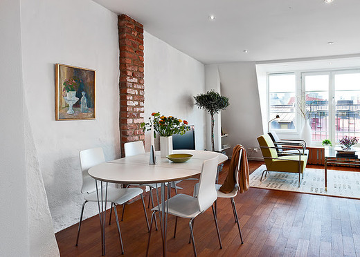 Сначала нужно понять что у аас будет стоять рядом с дымоходом: кровать, тв или еще что то (планировку мебели). И уже исходя из этого думать как его обыграть. Например, если рядом будет тв, то полочки можно, если комод - можно дымоход просто выделить, акцентировать. Ну и от стиля зависит