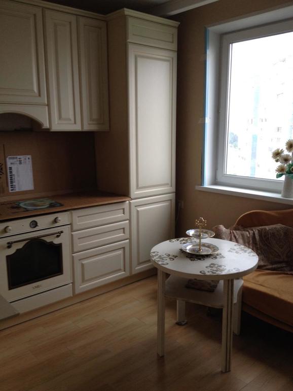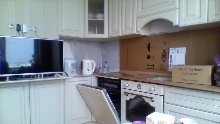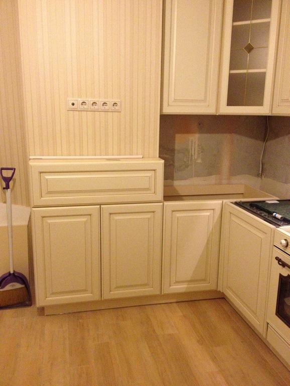 Смотрите на фото. Площадь кухни в 2 раза меньше. колонна тоже широкая. Мы ее обставили кухонной мебелью. собрана вчера)