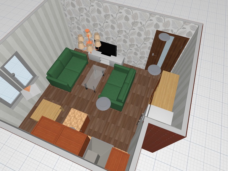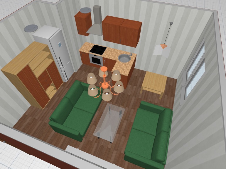 Помогите!!! незнаю как расставить мебель в кухне гостиной ((( 15 кв.м